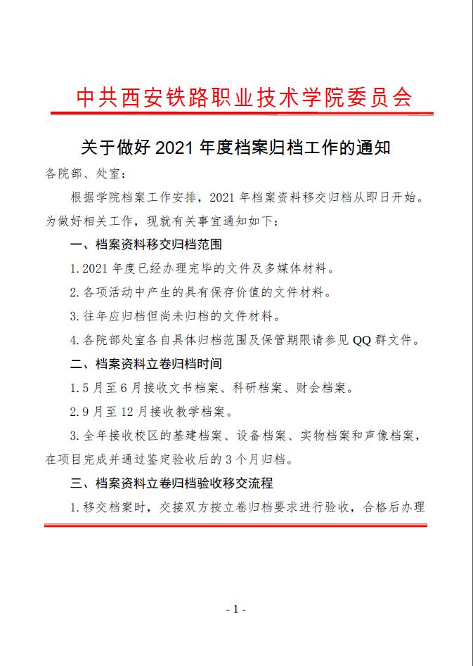 关于做好2021年度档案归档工作的通知